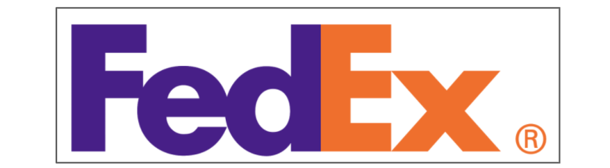 FedEx 的 logo:字母 E 和 x 之間的空白區域,形成了一個向右的箭頭,代表“前進”和“運輸”,儘管這個箭頭並未被實際描繪出來。