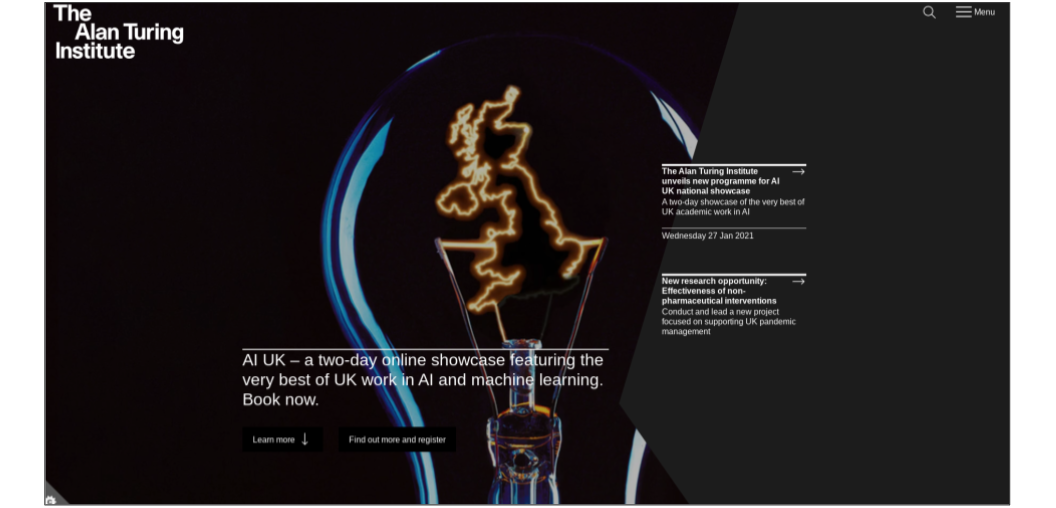 例子:Alan Turing Institute 網站:利用非對稱的文字大小和佈局來吸引使用者注意重要內容。