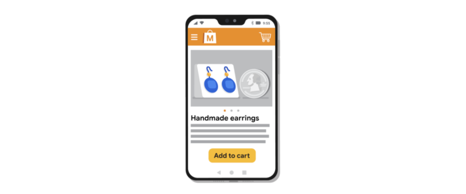 在電商應用中,如果使用者不清楚耳環大小,展示一張耳環和硬幣一起的圖片,就能透過對比了解其實際尺寸。