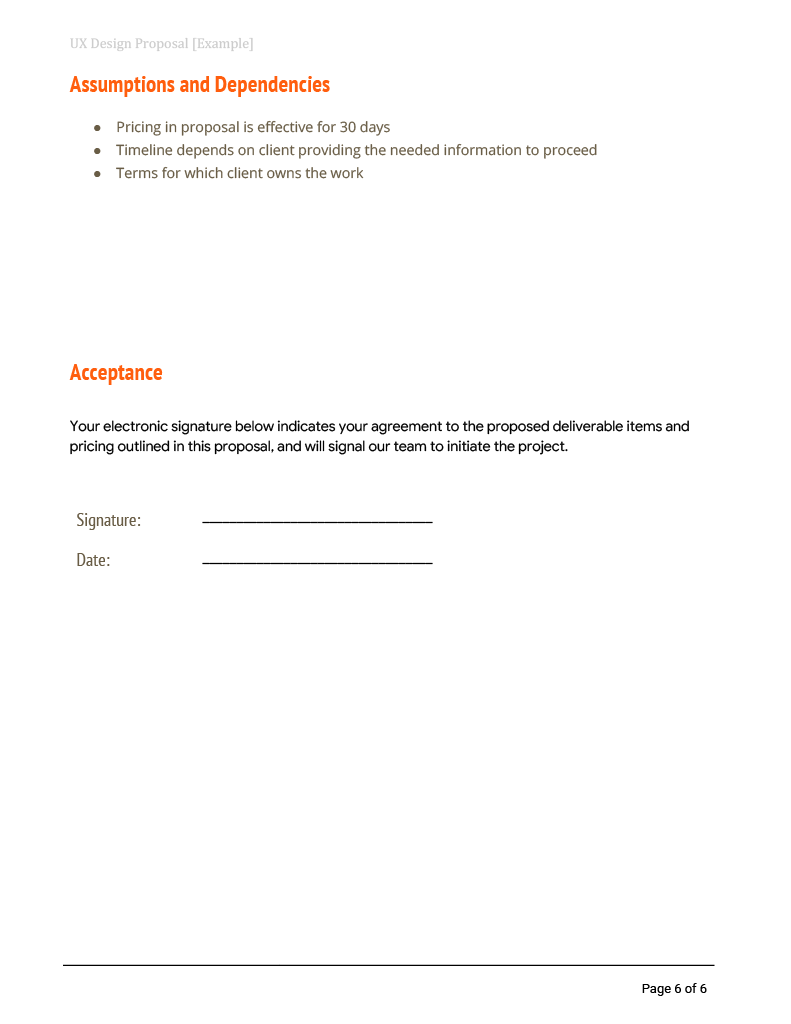 第6頁:假設條件與簽署(Assumptions & Acceptance)