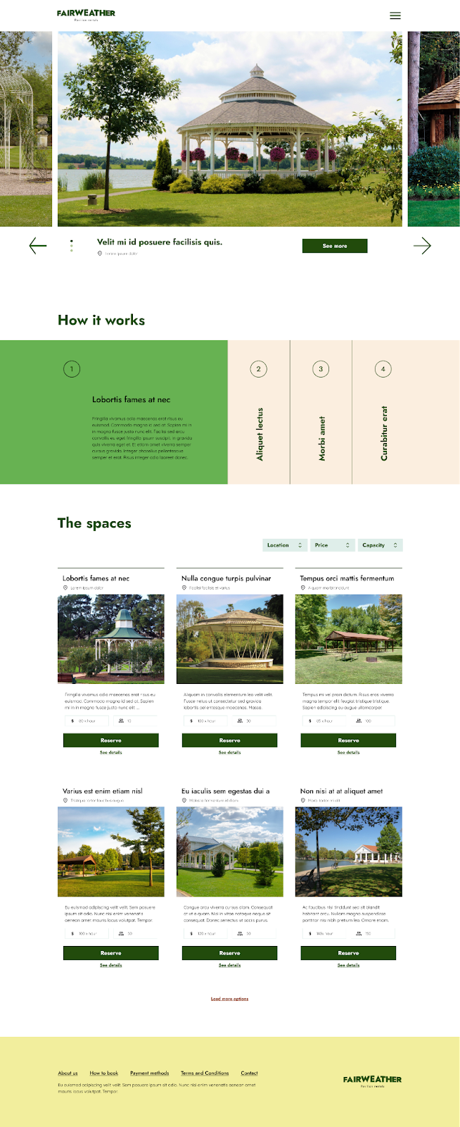 示例二:Fairweather Pavilion Rentals —— 戶外活動亭租賃網站