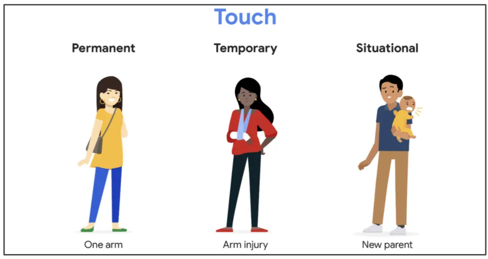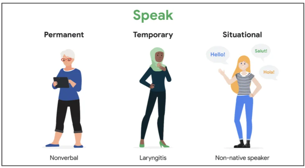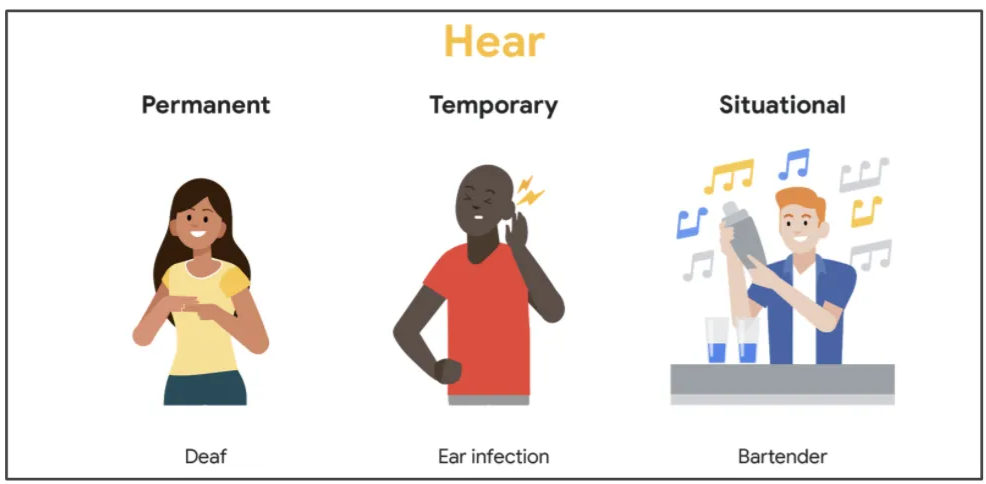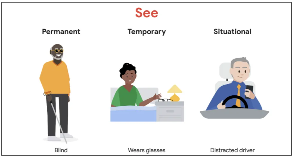 為各種能力的使用者(包括有永久、臨時或特定情況下的障礙)創造可用的產品、裝置和服務。簡單說,無障礙設計不只是為少數人服務,而是讓所有人都能輕鬆完成任務。