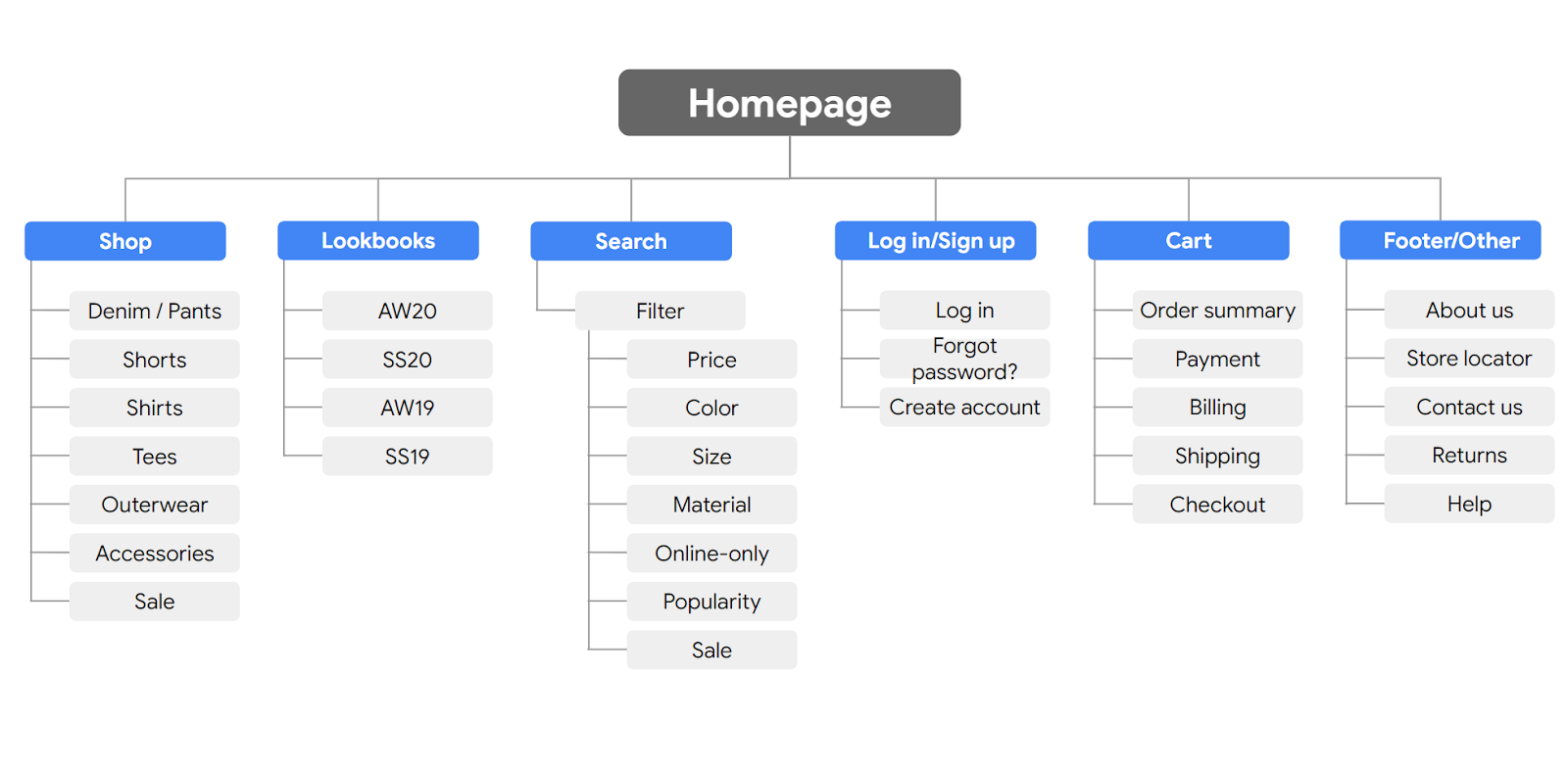 - 層次:區分主要主題和次級主題,如“Shop → Denim/Pants”。