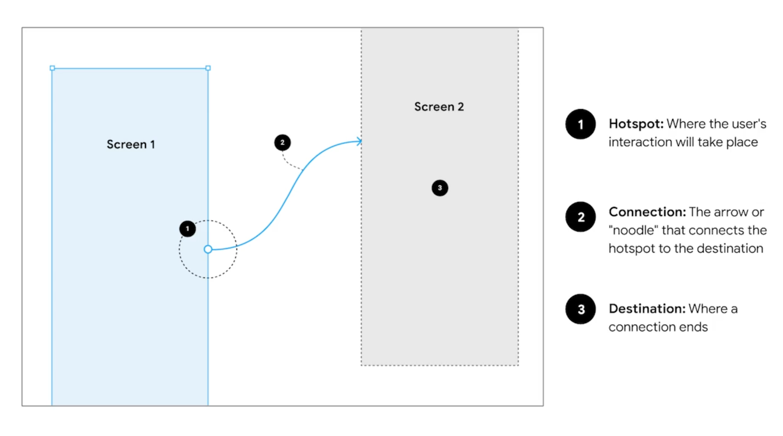 連線。熱點與目標介面的“箭頭/連線”又叫 noodle(原型線),表示從當前介面跳到下一個介面的邏輯關係。通俗理解:“從 A 按鈕 → 跳到 B 頁面 的路徑”