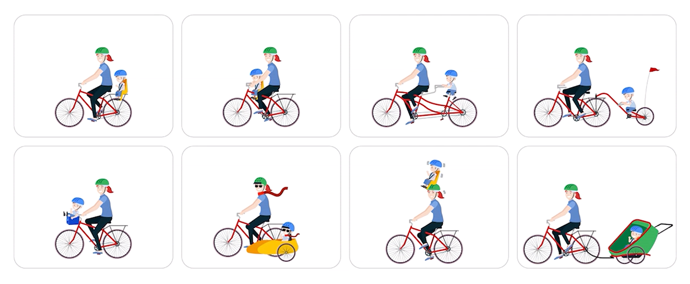 Olivia 想和 2 歲的兒子 Luca 一起騎車,但 Luca 還不會自己騎。我們可以用"我們如何……?"這個方法來想辦法。