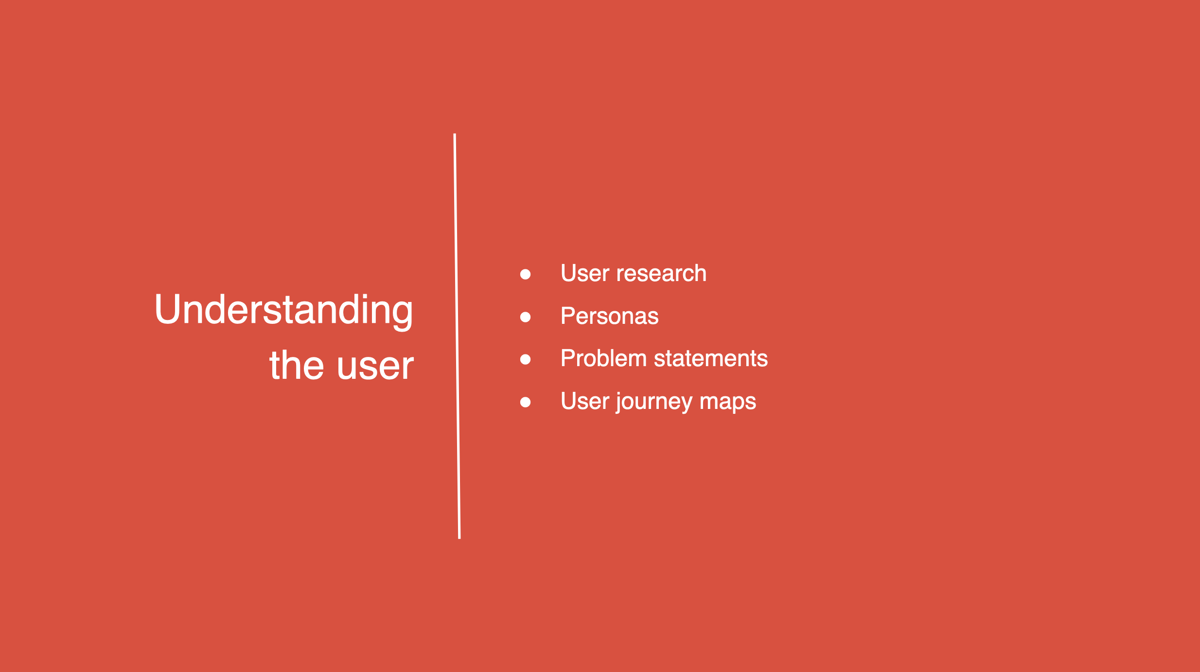 內容:此頁列出四個子主題:使用者研究、人物角色、問題陳述、使用者旅程圖。