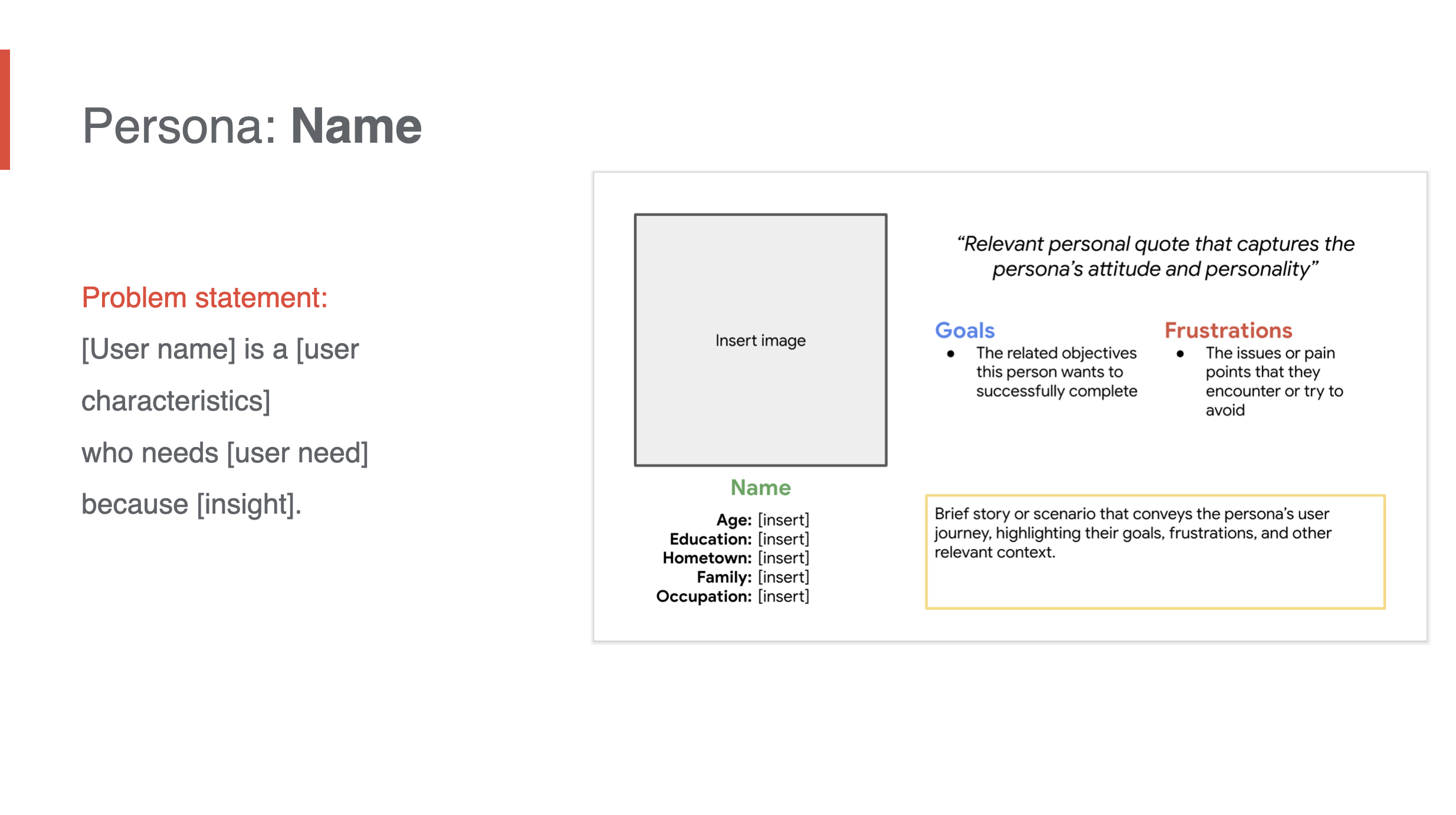 使用者畫像與問題陳述:填寫Persona的姓名、背景及一句問題陳述:[使用者]是[特徵],他需要[需求],因為[洞察]。