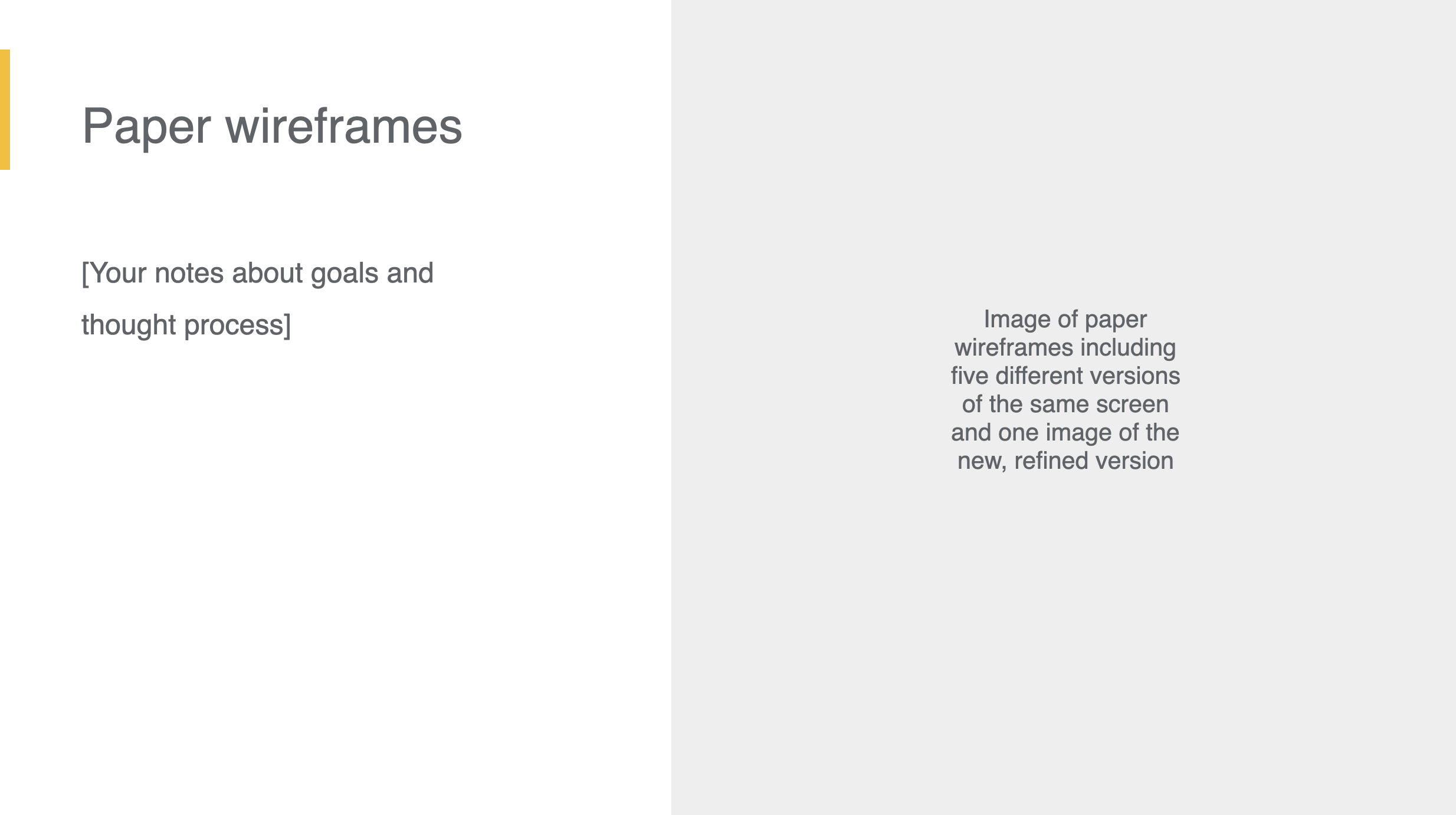 手繪線框圖:展示多個版本的草圖,並寫下你的設計思路或目標。
