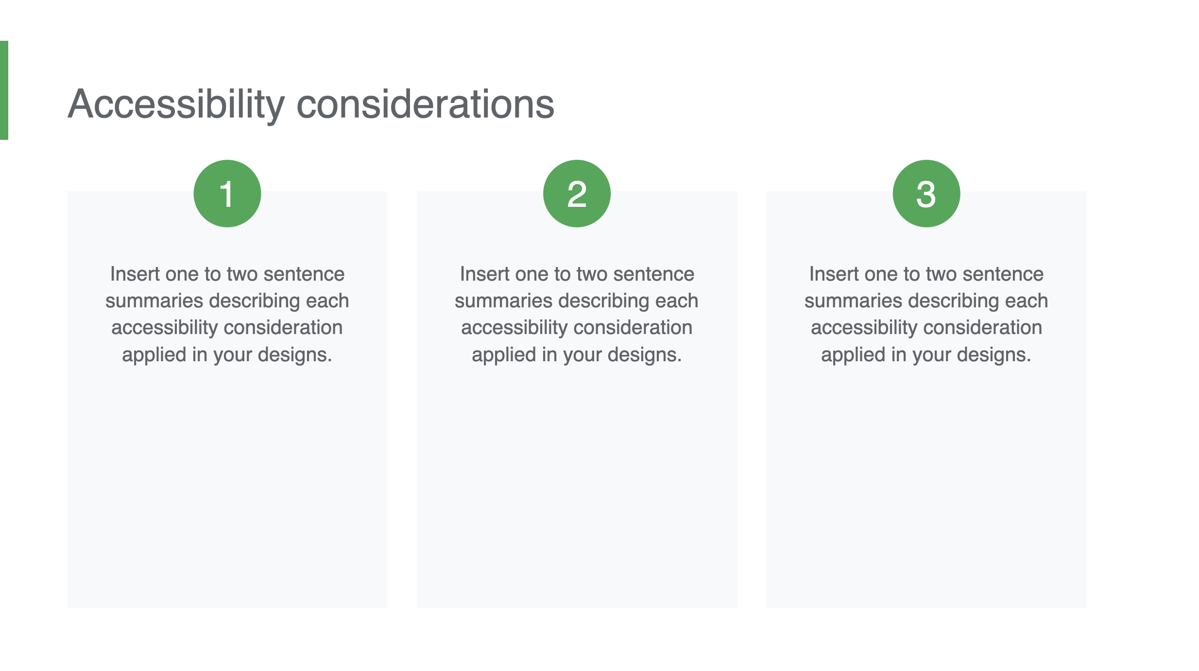 無障礙設計考慮:寫出三條設計中採用的無障礙最佳化措施(對比度、文字替代、鍵盤操作等)。