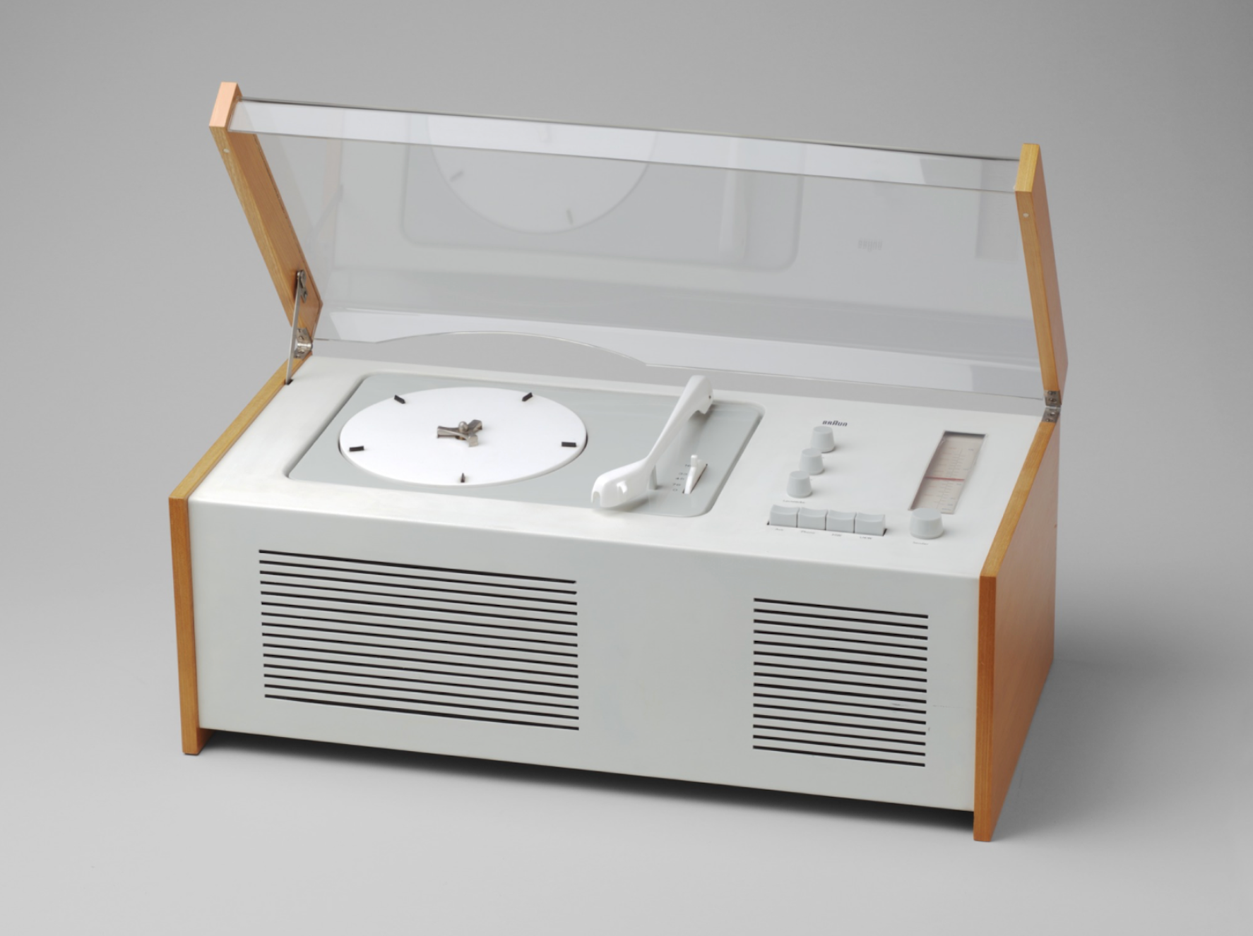 Braun SK4唱機就是一個很好的例子,因其白色金屬外殼和透明蓋子被稱為"白雪公主的棺材"。它使用金屬板和榆木側板製作,與當時流行的華麗木質設計不同。1956年推出的SK4開創了Braun新的設計風格——每個設計細節都有實際用途。比如,透明塑膠蓋不僅好看,還能解決金屬蓋在高音量時震動的問題。這類產品開創了電子裝置新時代,它們不再偽裝成傢俱,而是成為既美觀又實用的獨立產品。