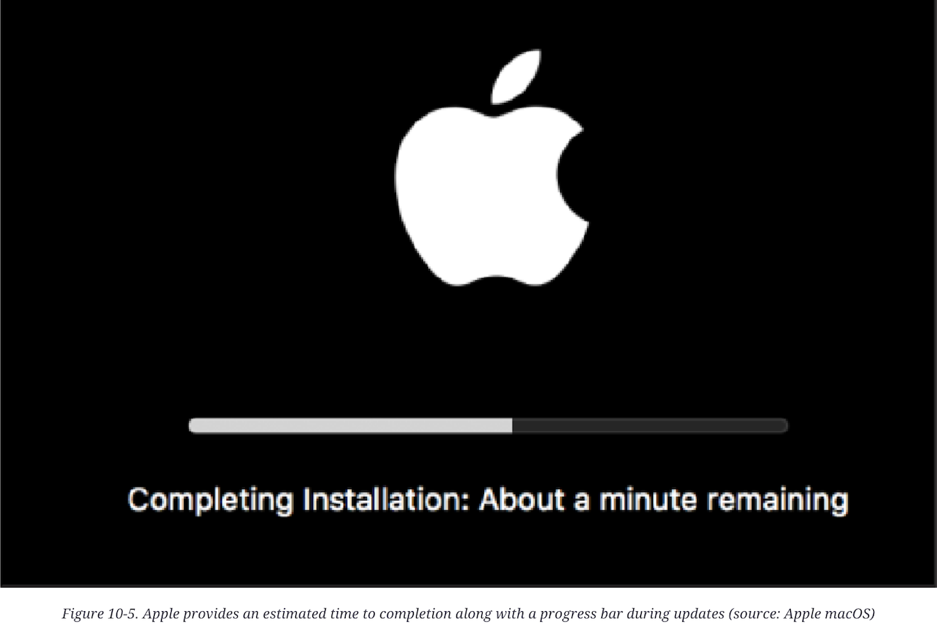 Apple 安裝屏:提供剩餘時間提示與進度視覺化,讓使用者知道需要等待多久,便於安排時間。