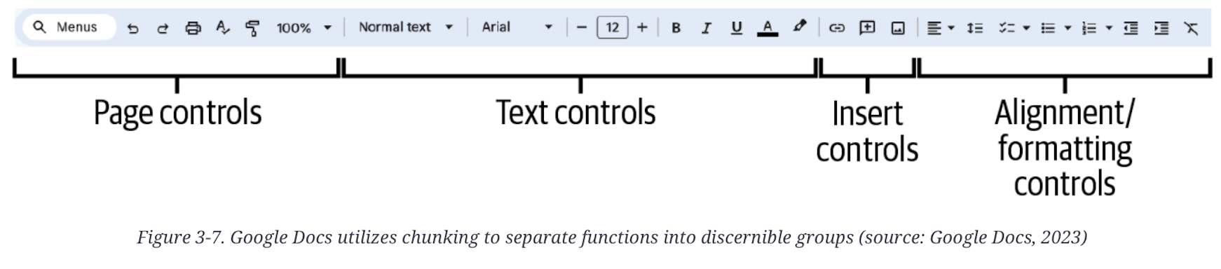 - 將內容組織成小型單元塊,幫助使用者更輕鬆地處理、理解和記憶。這種"分塊"策略透過減少認知負荷,提升記憶效率。