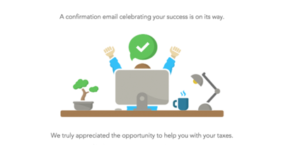 TurboTax 報稅軟體:提交完稅表後展示慶祝插畫;設計溫暖有趣,符合“任務完成、如釋重負”的使用者情緒;不強行推銷其他產品,保持使用者好感。