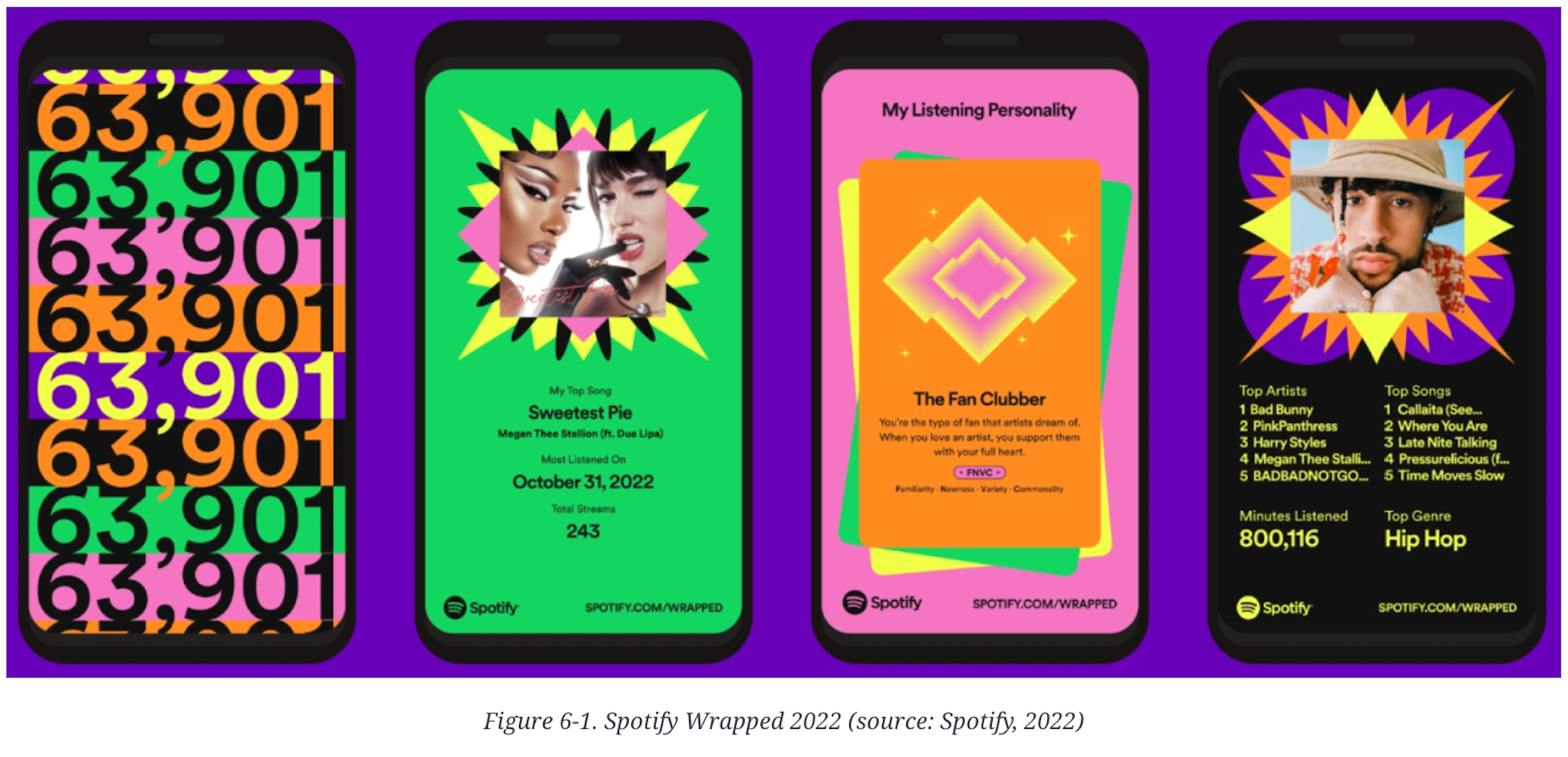 Spotify Wrapped 讓使用者回顧全年的音樂收聽記錄,包括最愛藝術家、熱門歌曲和收聽統計,還提供音訊光環、音樂問答和專屬配樂等互動功能。這種個性化體驗使使用者感到特別,幫助他們瞭解自己的音樂喜好,並透過分享鼓勵社群互動,留下持久的積極印象。