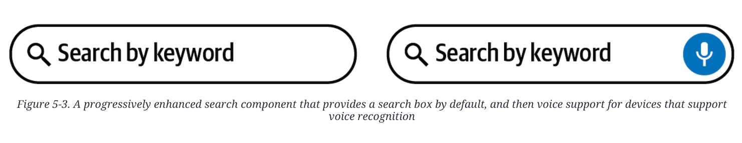 基礎搜尋框人人可用,但在支援語音識別的裝置上會顯示麥克風按鈕,擴充套件輸入方式同時保證基本功能。