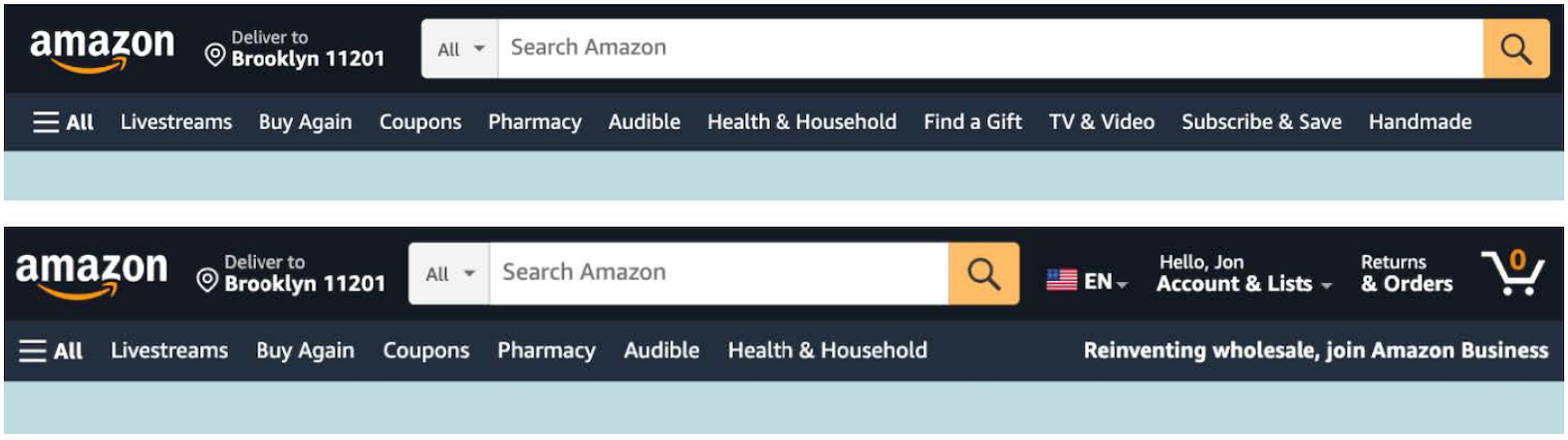 使用者能在移動端和瀏覽器中調整預設字型大小來提高可訪問性。但若設計未考慮字型變大情況,可能導致佈局混亂。亞馬遜導航設計應對字型變化得當:字型變大時,它會按重要性重組導航連結並去除次要連結,保持佈局清晰易用。