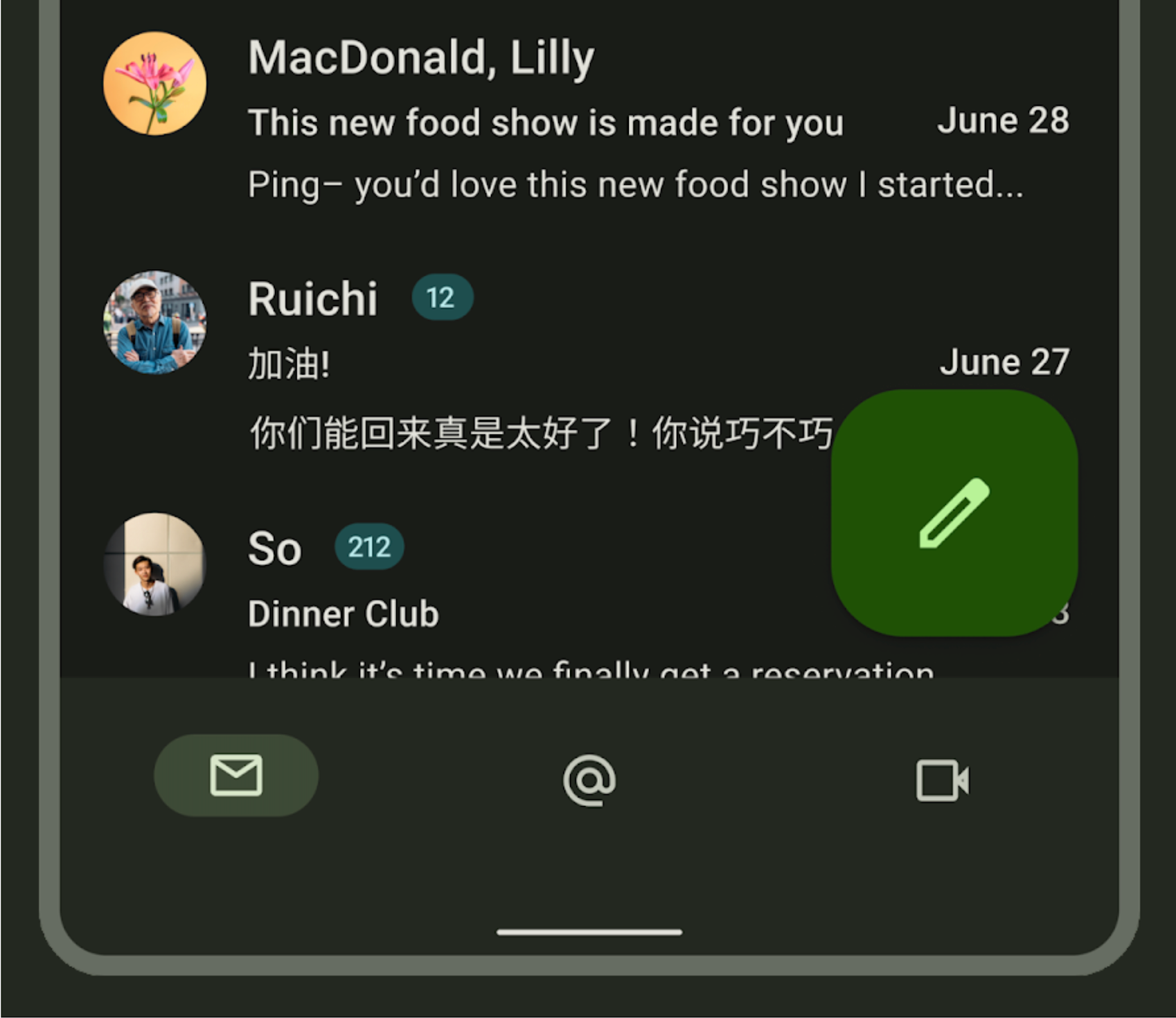 Google 的 Material Design 中的 FAB(Floating Action Button)是典型的突出設計:使用與介面其他部分明顯不同的顏色。位置固定在介面右下角,形成視覺錨點。強調頁面中最主要的操作,例如新增新內容。