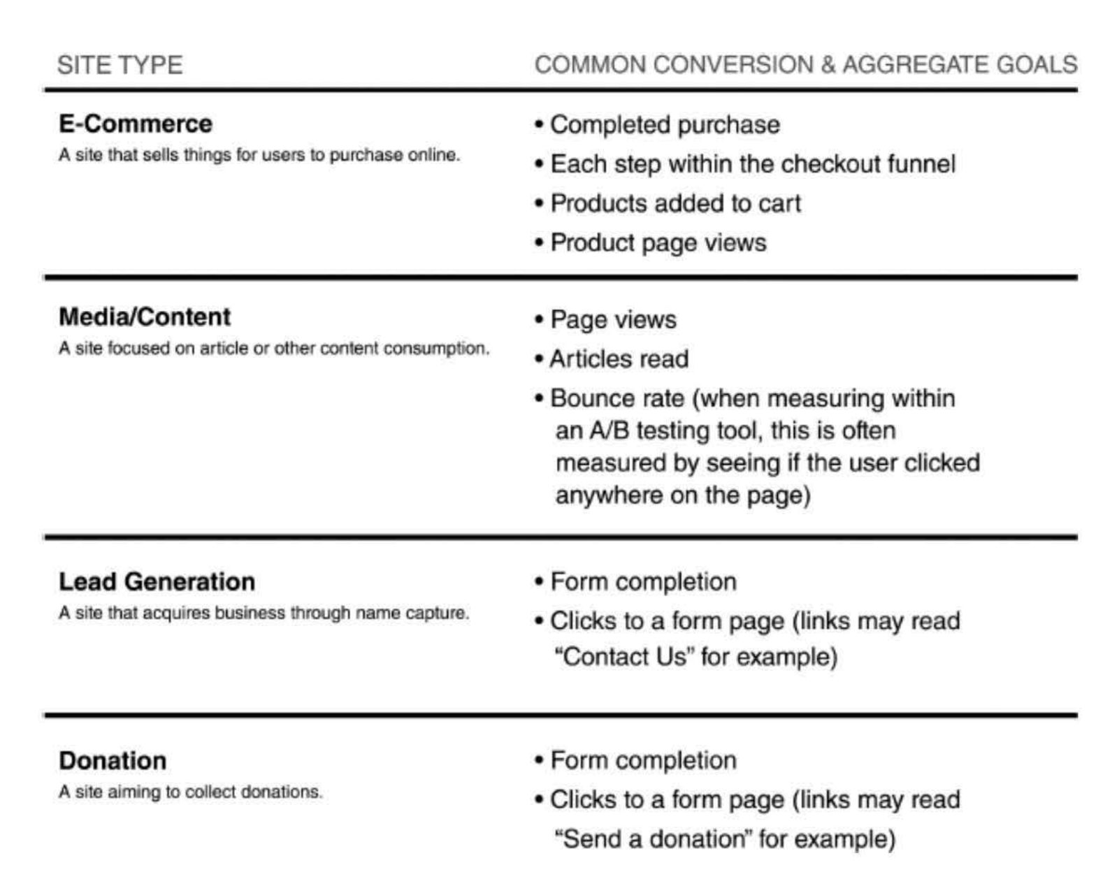 | 網站型別 | 描述 | 常見轉化 & 彙總目標 |