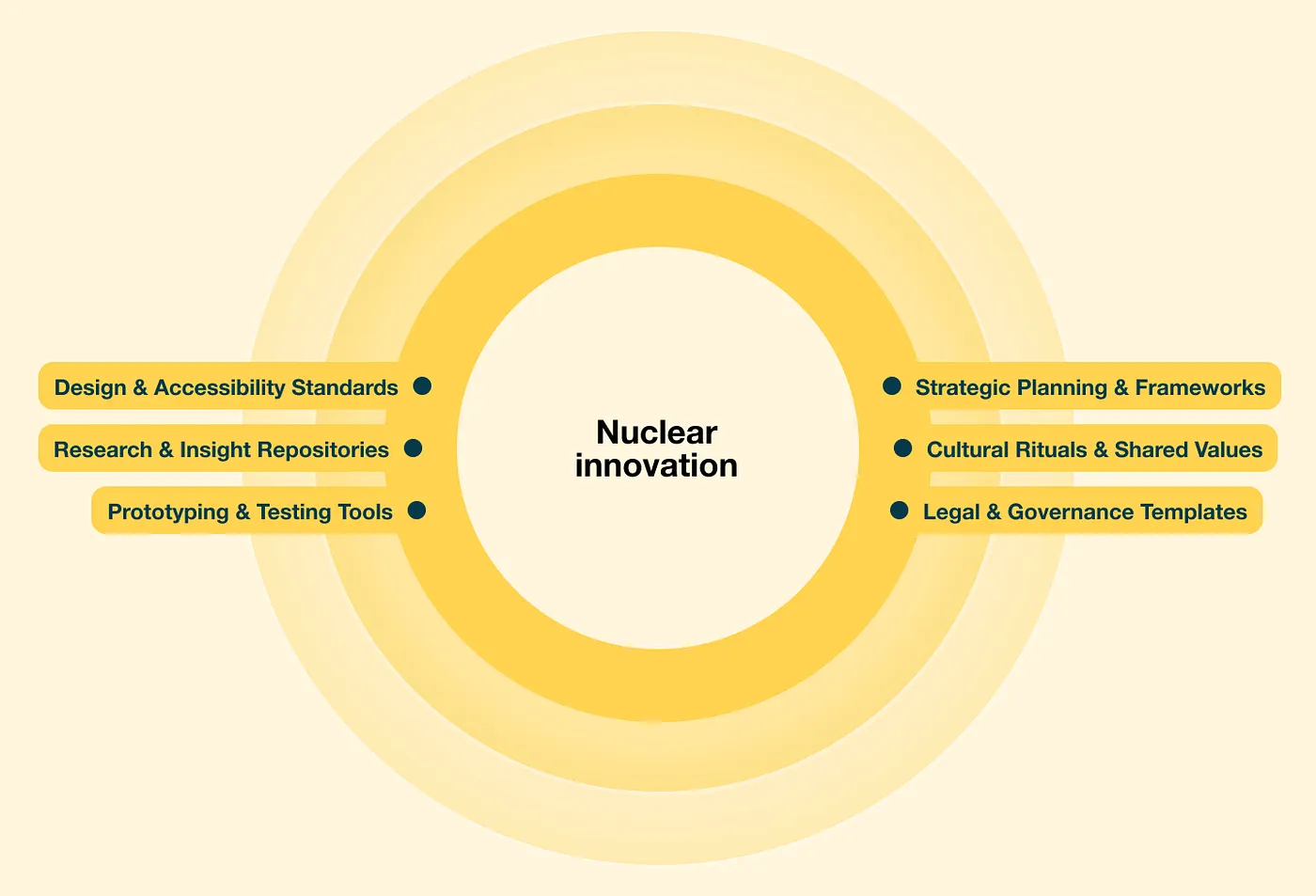 - 每個職能透過紅線(Innovation Lifeblood)和黃線(Systemic Feedback)與“共享核心”連通