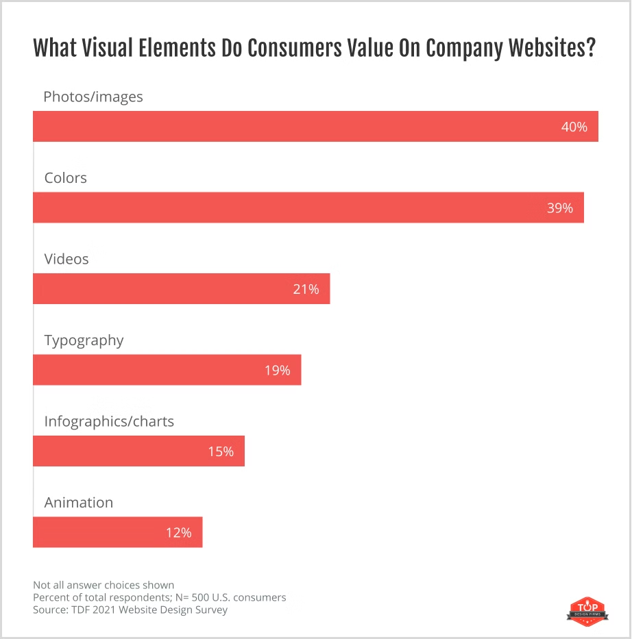 39%的人認為顏色是網站最重要的元素。