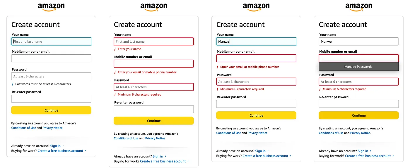出現錯誤時,不要只顯示“錯誤”,而是說清楚“哪裡錯了”(例:“請輸入至少6個字元”)
