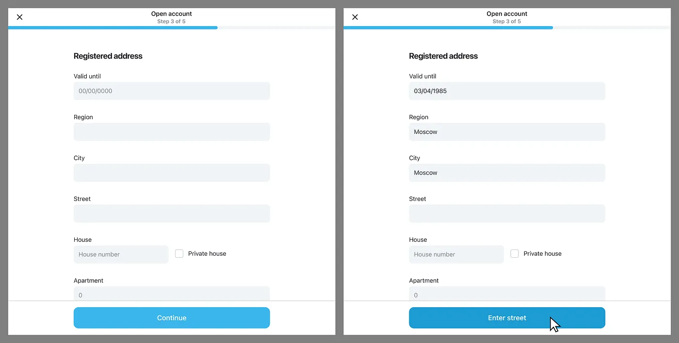 - 按鈕內容變成「Enter street」,明確告訴使用者下一個該填哪個欄位