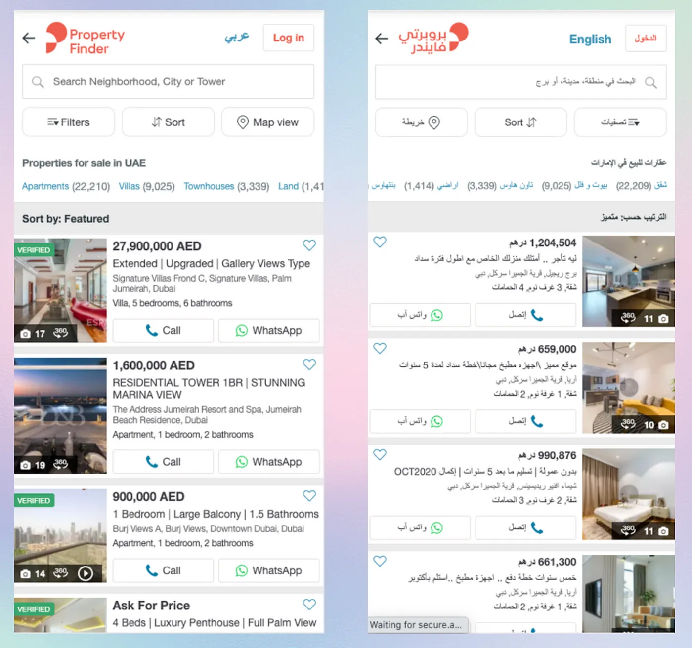 在全球前 1000 萬個網站中,阿拉伯語佔 1.1%,希伯來語佔 0.5%。兩種語言都從右向左書寫,這會讓介面佈局完全翻轉。例如阿聯酋的 Property Finder 網站就需要在語言切換時調整佈局。