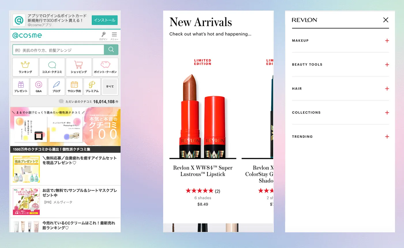 日本消費者習慣大量資訊的瀏覽,就像餐廳門口展示的塑膠食物模型或報紙廣告一樣。因此,單純翻譯英文應用並不足以滿足日本使用者。