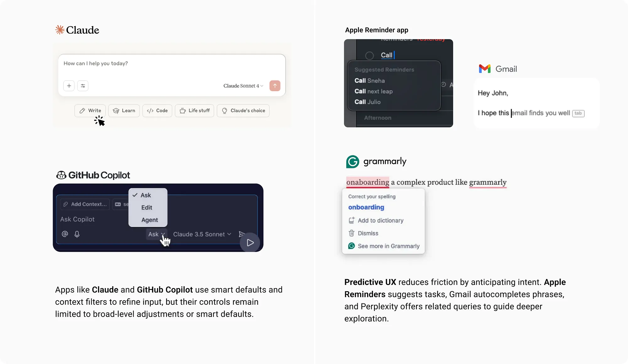 Predictive UX(如 Apple Reminders、Gmail、Grammarly):