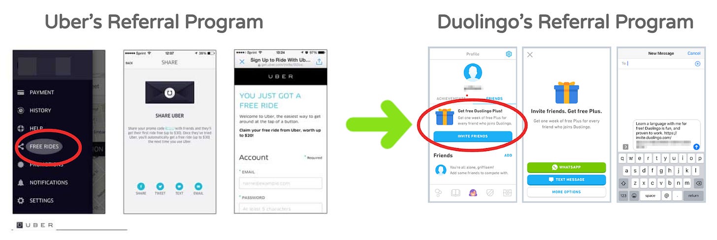 第一次失敗後,我們完全改變策略,組建了一個專注獲客的團隊。當時Uber透過引薦計劃獲得了巨大成功,所以我們仿效他們推出了類似計劃,成功邀請好友可獲得一個月Super Duolingo會員(當時叫Duolingo Plus)。這看起來是個不錯的獎勵!