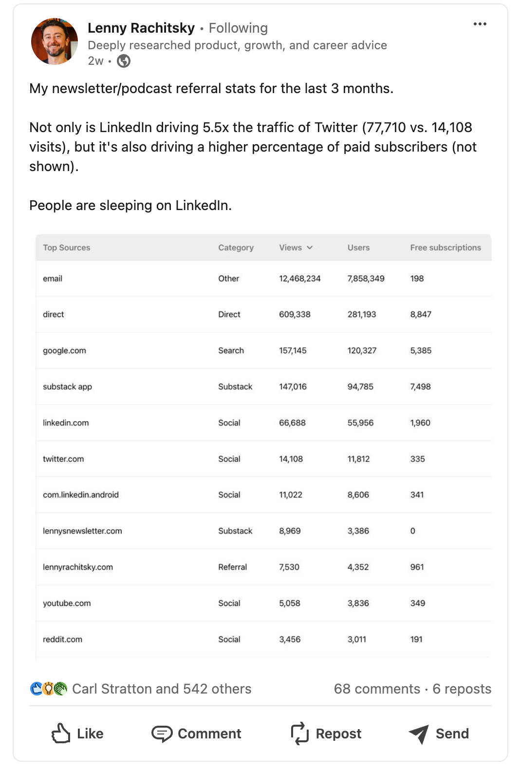 LinkedIn在2003年推出社交資訊流,但最初僅作為展示晉升和祝賀的公告板。使用者主要為求職註冊,產品體驗受限於願景不清。關鍵轉變是將定位從資訊流展示升級為知識分享平臺。首席產品官Tomer Cohen提出打造經濟機會平臺的新願景。團隊透過200萬使用者測試驗證方向,並在使用者增長的推動下不斷最佳化。如今擁有10億使用者的LinkedIn持續專注於知識分享和經濟賦能。