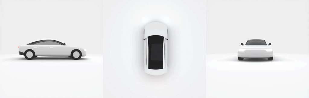 車輛在Cinema 4D和Octane Render中建模。為便於迭代,我們使用樣條線和基本體來保持幾何體的靈活性,以便快速調整車頂線和軸距等細節。最後在After Effects中進行後期處理,製作成產品團隊所需格式。