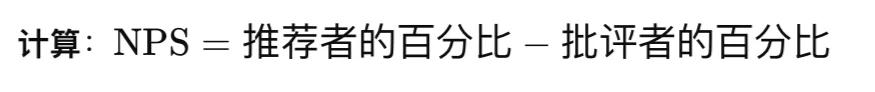 計算:NPS=推薦者的百分比−批評者的百分比