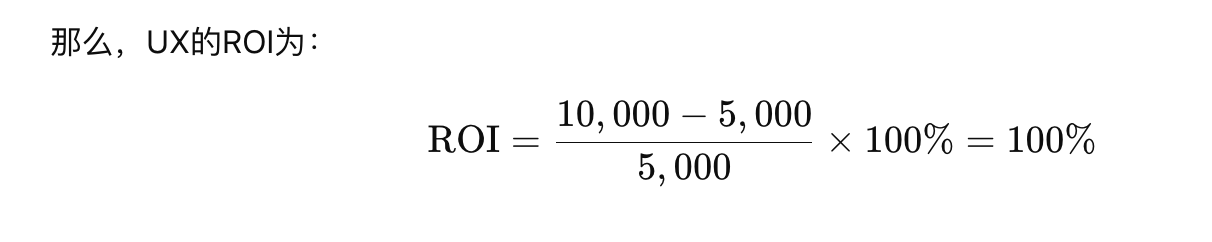 最終,將這些業務收益與UX工作的成本進行比較,計算ROI。例如: