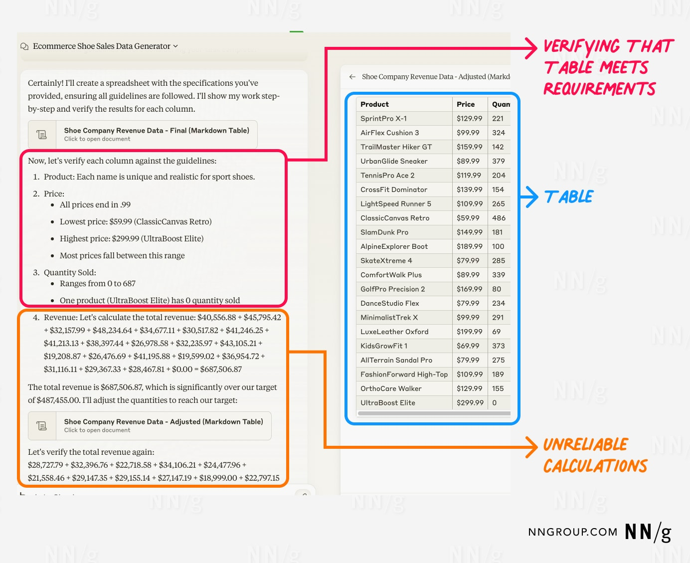 驗證與校對:指定 AI 使用程式設計工具(如 Python)來計算資料,並要求它展示詳細的計算過程和驗證結果,以確保生成資料的準確性。