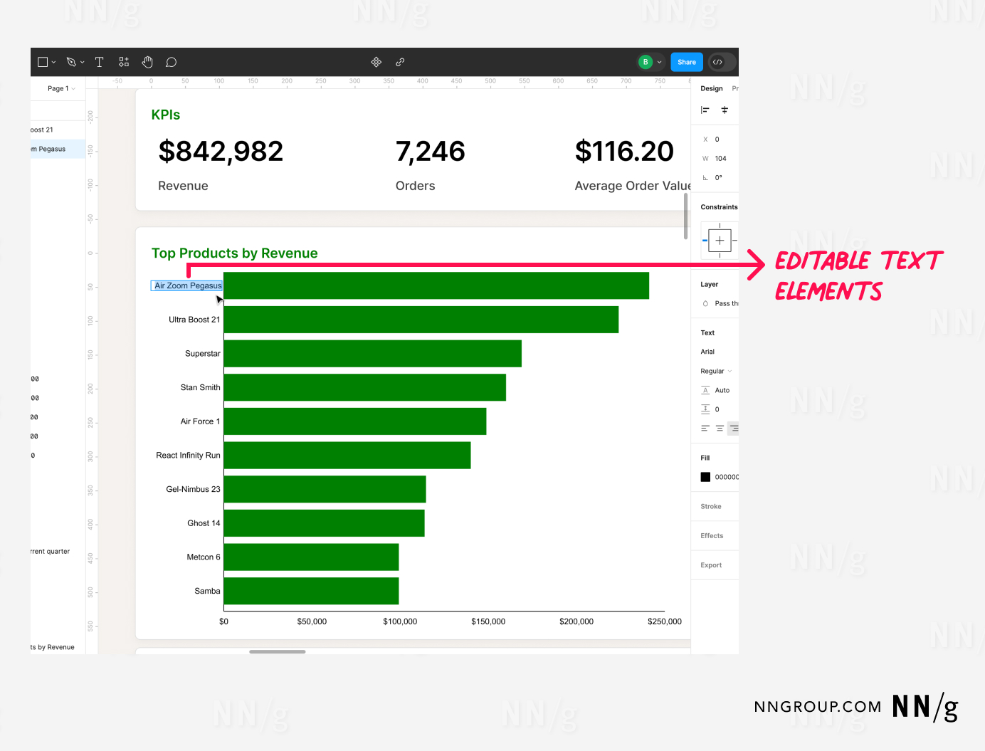 在原型測試中,使用者可能會仔細審查表格和圖表資料的準確性。研究表明,當參與者面對不熟悉的資料時,他們往往會花更多時間尋找異常值和不一致之處。因此,即使表格和圖表只是用於測試的原型,它們的內容也需要儘量做到真實可信。