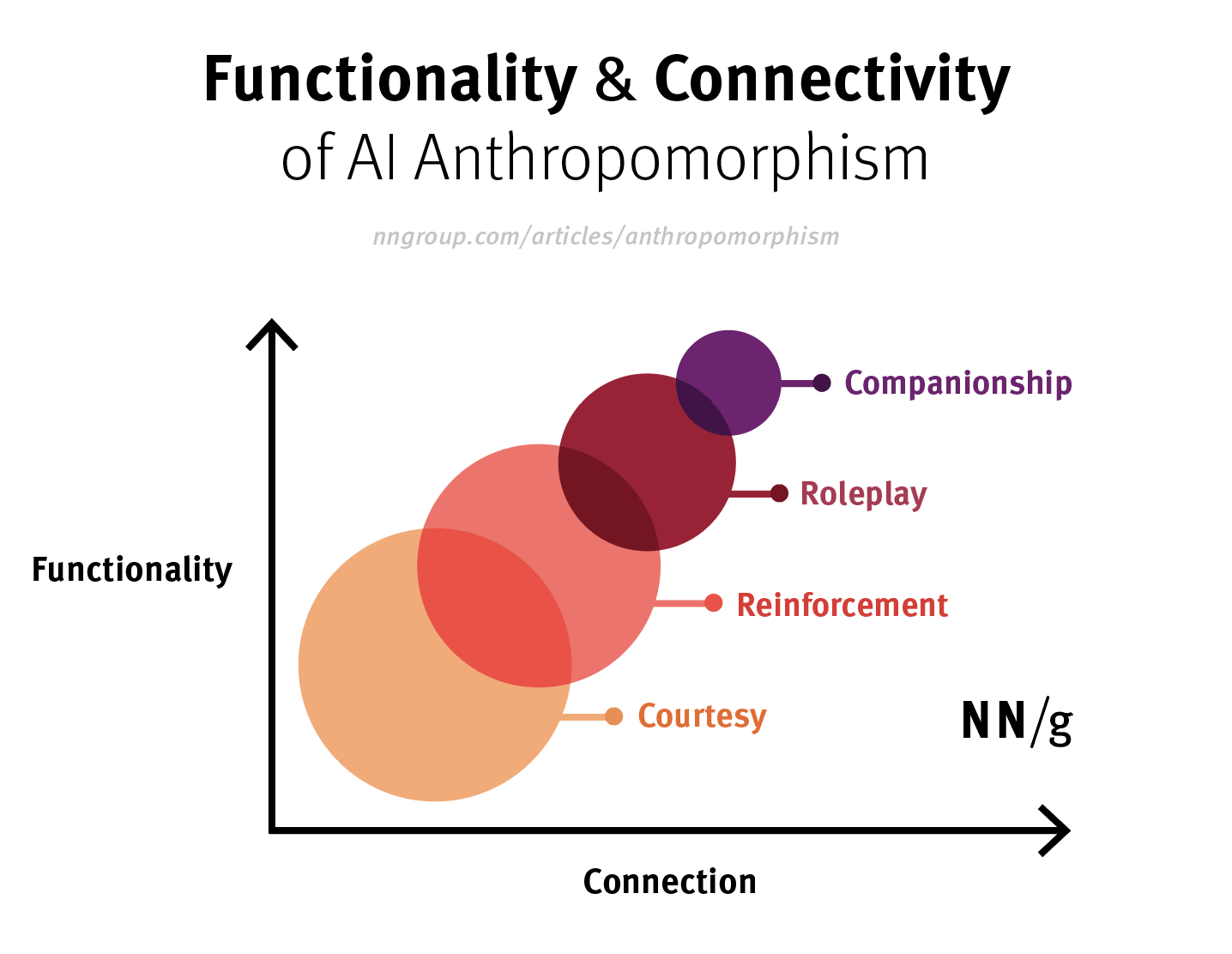 背景:在生成式AI的互動設計中,瞭解AI系統的擬人化程度可以幫助設計團隊建立更合適的使用者體驗。本頁面討論了生成式AI的擬人化(Anthropomorphism)四個層級,以及這些層級對使用者體驗的影響。