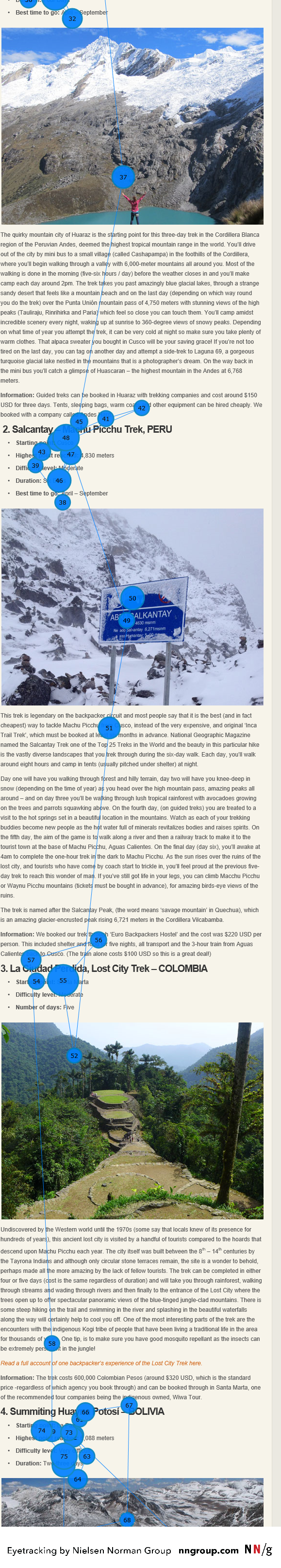 - 案例:在South America Backpacker上,使用者專注於南美徒步旅行的專案符號列表,跳過其餘內容。