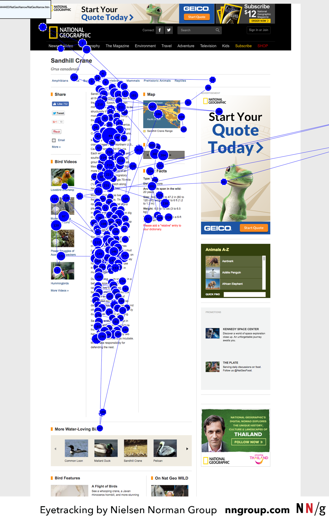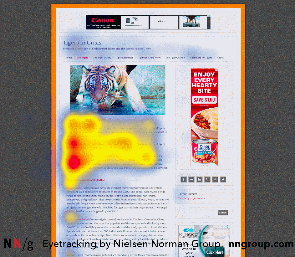 - 案例:在TigersinCrisis.com中,使用者試圖查詢蘇門答臘虎的數量,形成經典的F型掃描模式。