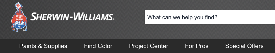 Sherwin-Williams導航選單:“塗料與工具”、“尋找顏色”、“專案中心”幫助使用者快速定位目標頁面