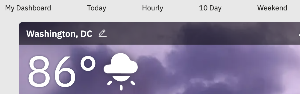 Weather.com 標籤名稱提示使用者可以在不同的預報檢視之間切換,從而實現了與使用者的互動。利用清晰的標籤名稱引導使用者在天氣檢視間自由切換,提升介面可用性和使用者體驗。