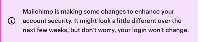 Mailchimp 正在進行一些更改,以提升您的賬戶安全。接下來幾周頁面可能會有所不同,但別擔心,您的登入方式不會變。