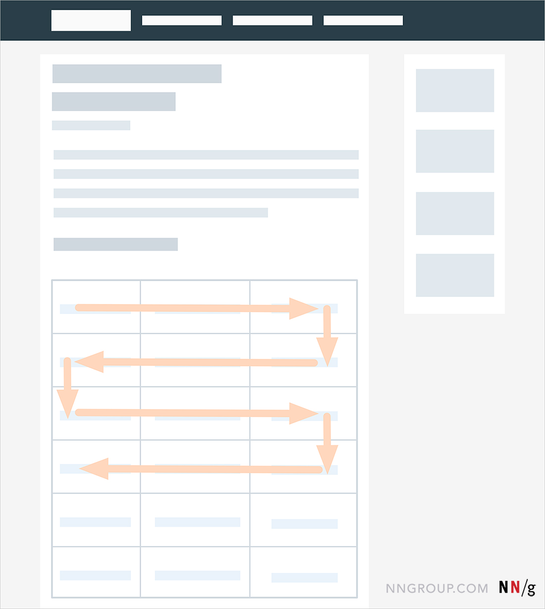 這種模式減少了視線的無效移動,是一種高效吸收資訊的方式。然而,表格設計不當可能會干擾這一模式,增加使用者的任務難度。