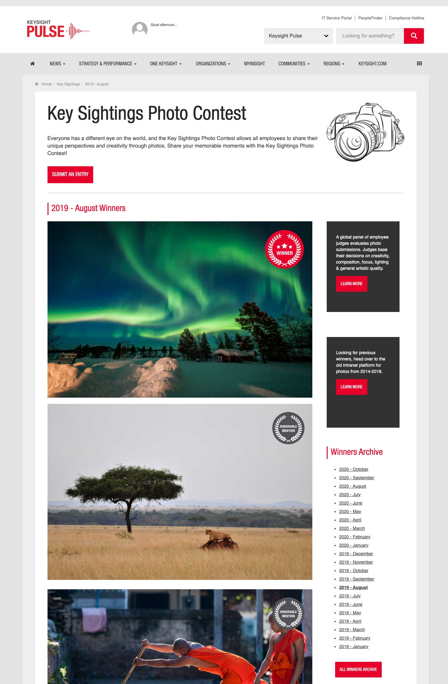 “Key Sightings”是一個員工主導的每月照片比賽,員工可以提交照片和故事,由全球評委團評選出1名優勝者和9個榮譽提名。