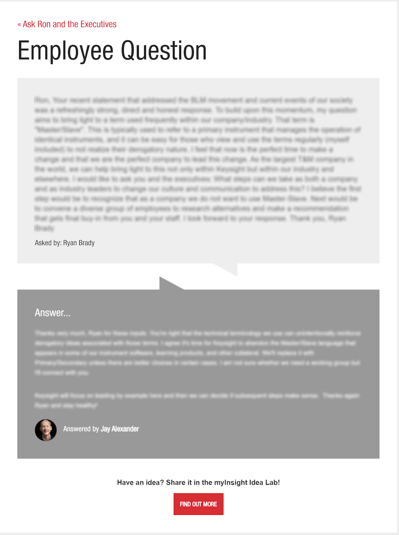 員工可在“Ask Ron and the Executives”區域向CEO及其他高管提問。