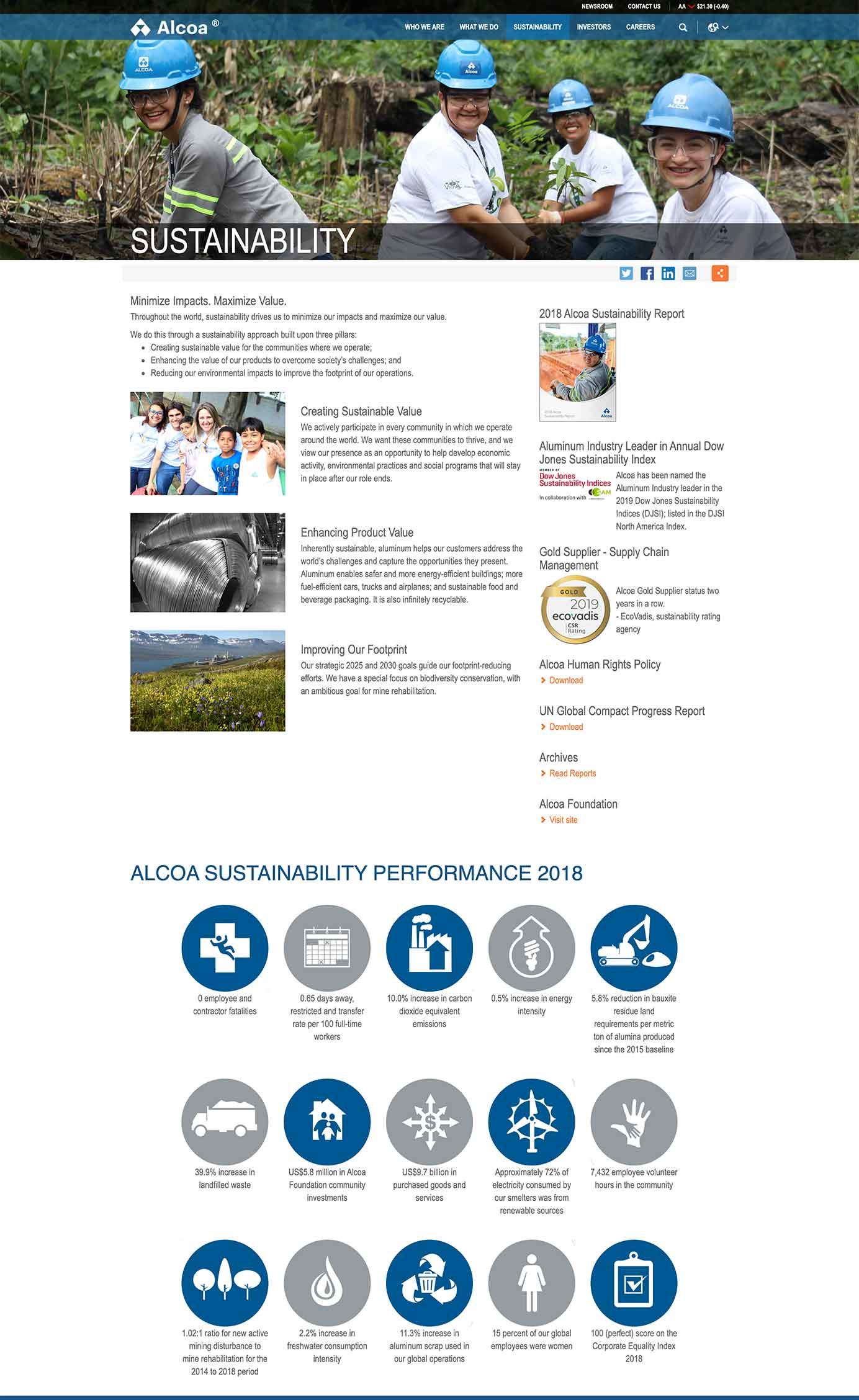 - 美國鋁業公司網站使用者對其詳細的可持續發展資訊印象深刻。