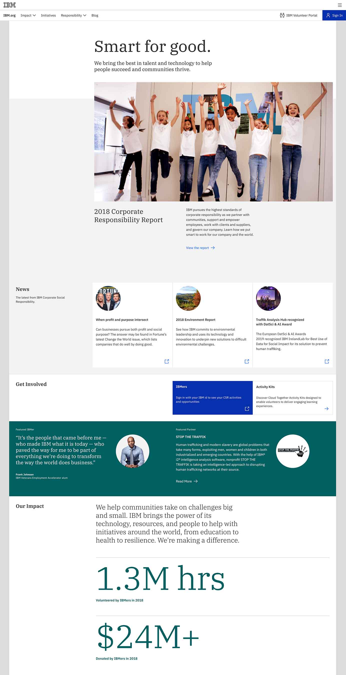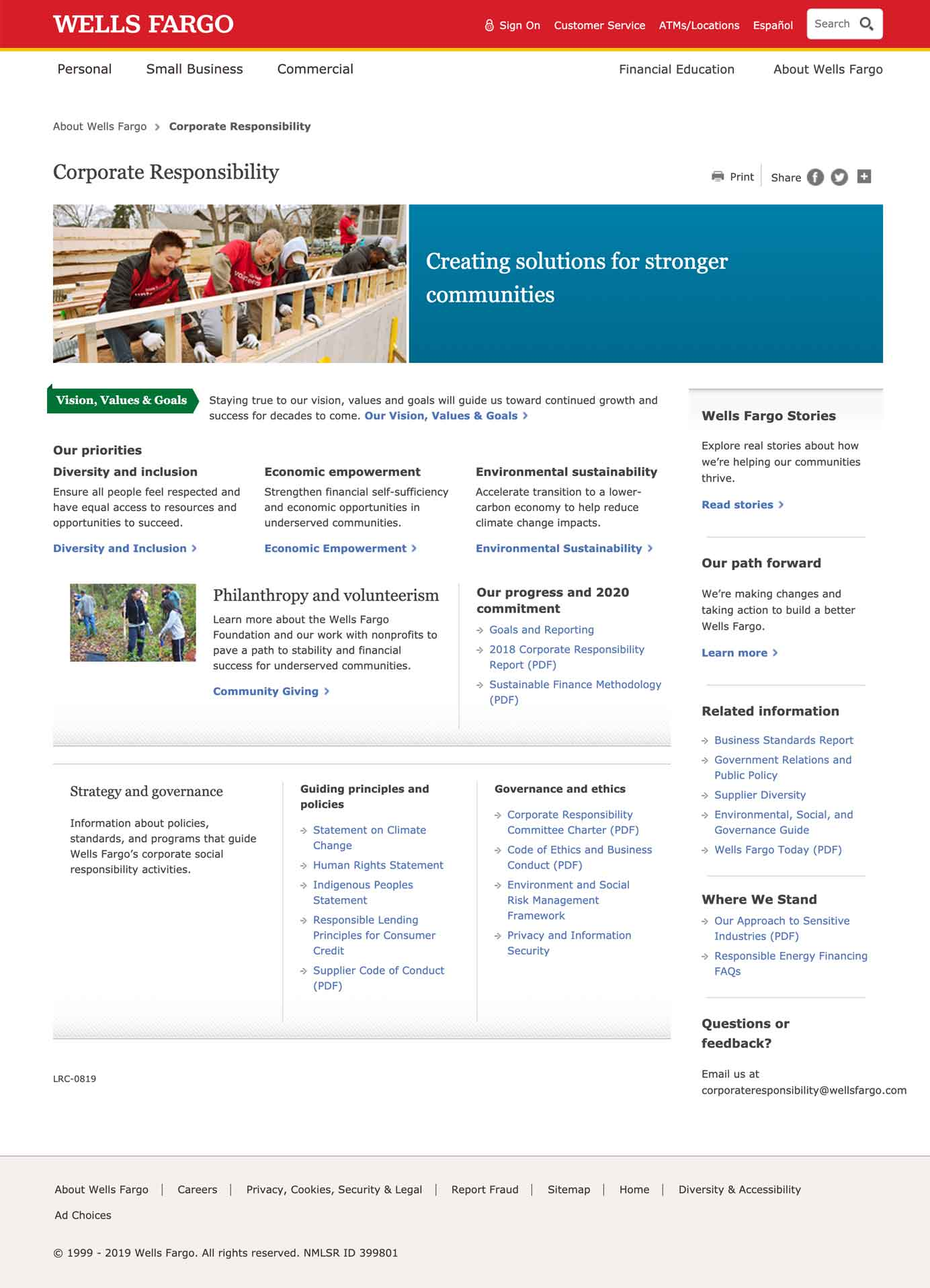 近期的企業網站可用性研究表明,積極回饋社會和社群的公司在使用者眼中更顯得善良和負責任。使用者樂於看到公司關心人類和環境的行為,這會影響他們的決策,也讓他們對與這些公司進行業務往來或求職產生好感。