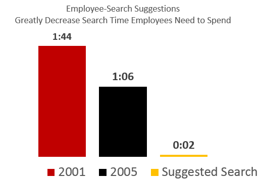 - 2005年:員工搜尋有所改進。員工搜尋功能變得更普遍,平均搜尋時間縮短至 1分6秒,但仍耗費約 47.5萬美元。