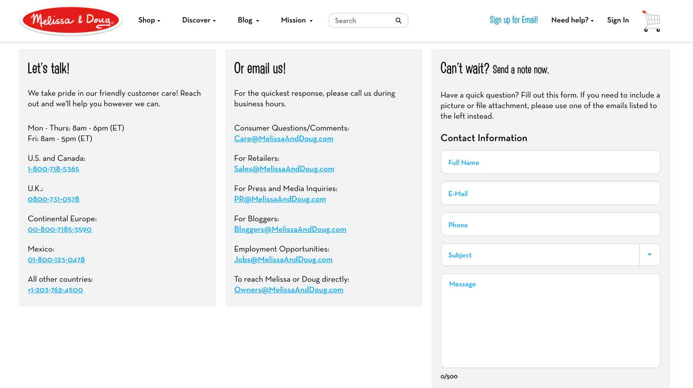 使用者對聯絡表單存疑,擔心資訊保安和回覆時間。Slack僅提供表單,引起不便;而Melissa & Doug提供多種選項,包括表單、郵件和國際電話,滿足多樣需求。