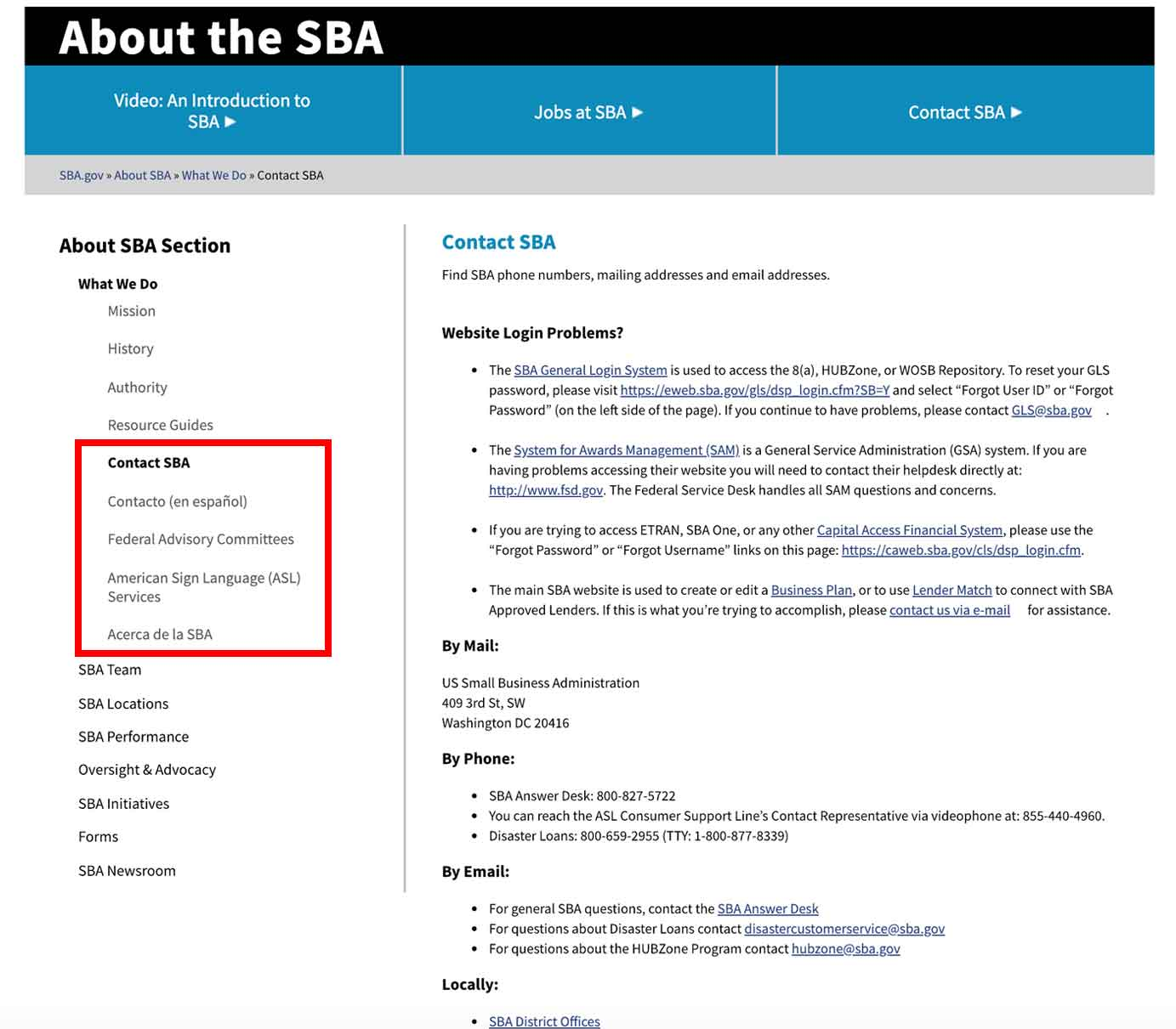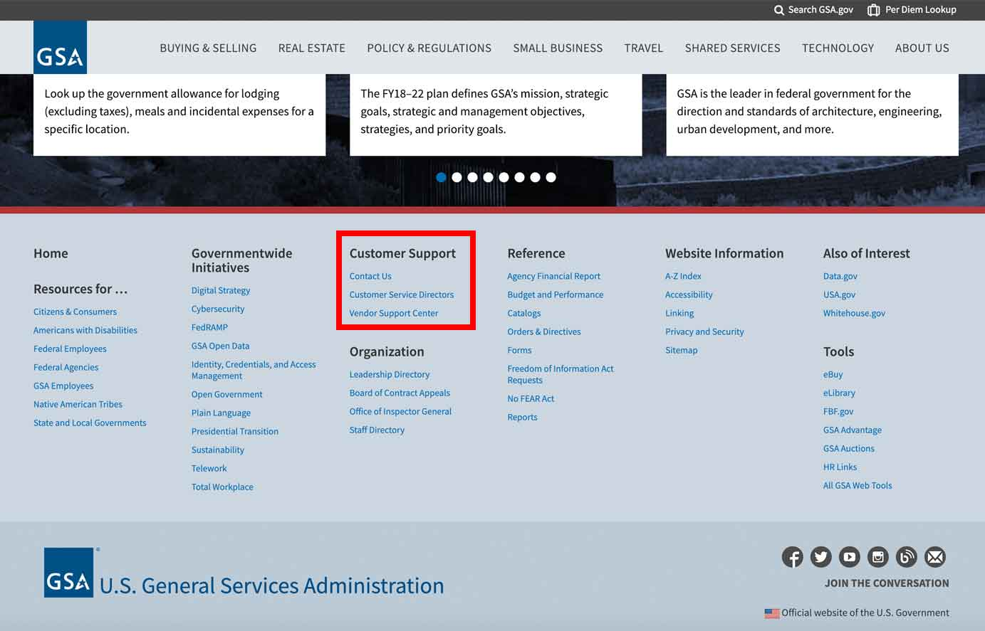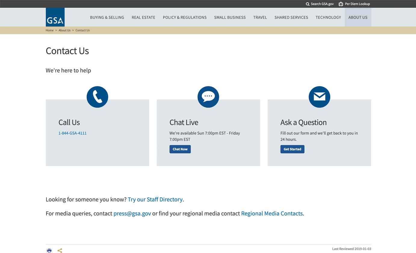 例項: 美國總務管理局的"聯絡我們"頁面列出了各種聯絡方式的可用時間。